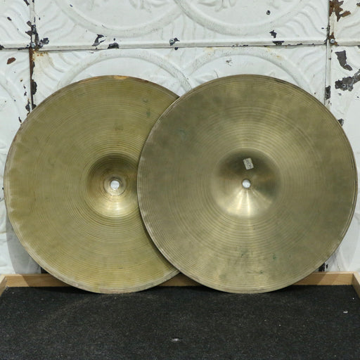 USA top/CAN bottom. No cracks. Edges are a bit rough. Hole of the top cymbal isa a bit out-of-round. Patina and marks of use consistent with age.